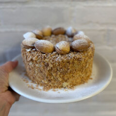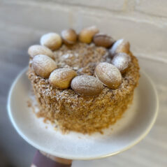 Een klassieke Napoleon met perfect gebakken dunne korsten en een zijdezachte roomcrème. Elke hap smelt op de tong en zorgt voor pure, nostalgische verwennerij.